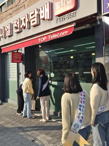 김천역 인근 상점들을 직접 방문하여 청소년 대상 담배 판매의 법적 문제성을 알리고 이와 함께 업주들에게 청소년 흡연예방에 대한 협조를 요청하며 홍보물을 배부했다.
