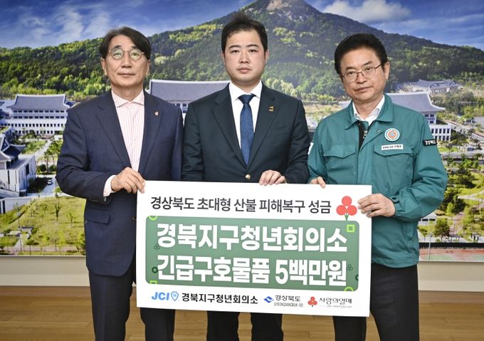 안동, 의성, 청송, 영양, 영덕 5개 시·군 산불 피해 주민들을 위한 이번 전달식에는 이철우 경북도지사를 비롯해 한국지구청년회의소 문관백 회장, 경북지구청년회의소 김재현 회장 등 10여 명이 참석했다.