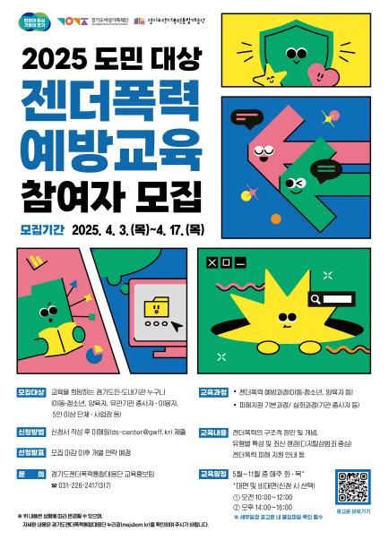 (아름다운교육신문) 경기도와 경기도젠더폭력통합대응단이 오는 17일까지 ‘2025 도민 대상 젠더폭력 예방교육’ 참여자를 모집한다.