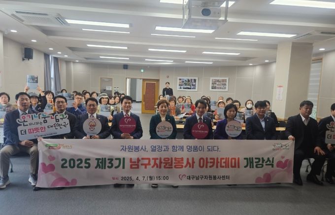 (아름다운교육신문) 대구 남구 지난 4월 7일, 대구남구자원봉사센터와 남구 이천동 배나무샘골 마을문화센터에서 ‘2025 제3기 남구자원봉사아카데미 개강식’을 개최했다.