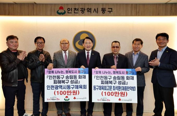 동구체육회 회원 및 고문이 기탁한 성금 각 100만원은 인천사회복지공동모금회에 전달됐다.