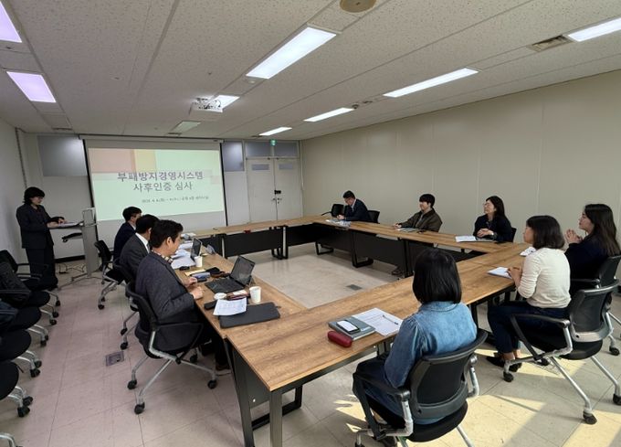 이번 심사에서는 국제표준화기구의 부패방지경영시스템 기준에 따라 외부 인증기관이 주관했으며 부패리스크 식별과 평가, 개선 계획 수립 및 실행, 내부 심사 및 경영 검토 등 전반적인 시스템 운영 절차에 대해 정밀한 검토를 받았다.
