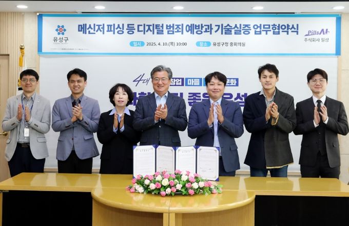 (아름다운교육신문) 대전 유성구는 10일 ㈜필상(대표 강필상)과 ‘메신저 피싱 등 디지털 범죄 예방 및 기술 실증 업무협약’을 체결했다.