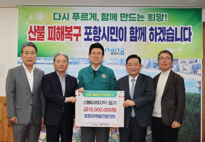 이강덕 포항시장은 “지역사회의 따뜻한 마음이 모여 각계각층에서 성금 기탁이 이어지고 있다”며 “소중한 성금이 이재민 지원은 물론, 경북 산불 피해 지역의 조속한 복구에 도움이 되기를 바란다”고 말했다.