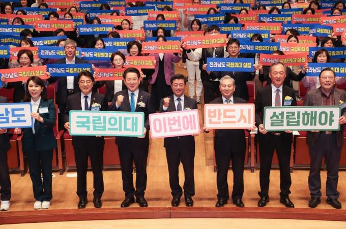 내빈을 비롯한 행사 참석자 전원은 전남 도민의 오랜 염원이자 지역의 핵심 과제인 국립의과대학 설립 의지를 하나로 모으는 퍼포먼스에 참여했다.