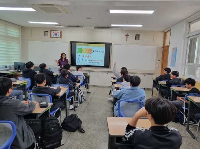 (아름다운교육신문) 성의중학교(교장 신재을)는 2025년 4월 9일 교내 전교직원 및 전교생을 대상으로 생명존중 및 학생자살예방교육을 실시했다. [2025학년도 1학기 생명사랑교육주간] 기간 중 이날 창체 교과 시간에 전교생이 생명존중 교육을 받았다.