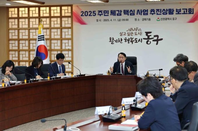 (아름다운교육신문) 인천 동구는 11일 갈매기홀에서 김찬진 청장 주재로 지역 경쟁력 향상을 위한 ‘2025 주민 체감 핵심 사업 추진상황 보고회’를 개최했다고 밝혔다.