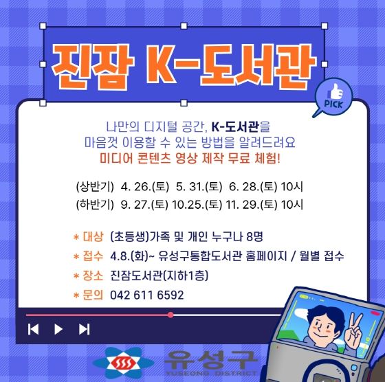 정용래 유성구청장은 “디지털 시대를 맞이해 공공도서관이 누구나 자유롭게 미디어 콘텐츠를 제작 및 체험할 수 있는 장소가 되길 기대한다”며 “앞으로도 디지털 문화 확산을 위해 다양한 교육과 체험 기회를 마련하겠다”고 말했다.
