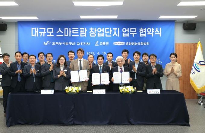 (아름다운교육신문) 고흥군은 지난 10일 ‘대규모 스마트팜 창업단지 조성사업’의 원활한 추진을 위해 한국농어촌공사-고흥군-농업법인 삼자 간 업무 협약을 체결했다고 밝혔다.