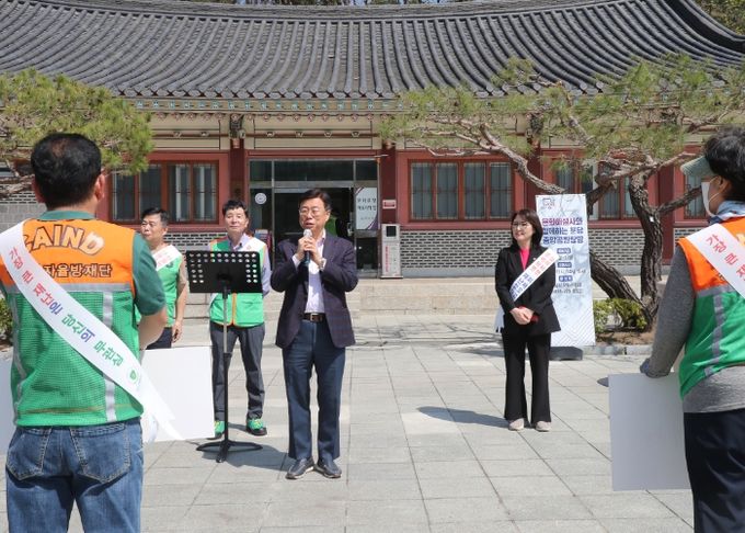 이날 캠페인에는 자율방재단원 100여 명이 참여해 공원을 찾은 시민들에게 산불예방의 중요성을 알리고 실천 방법을 안내했다.
