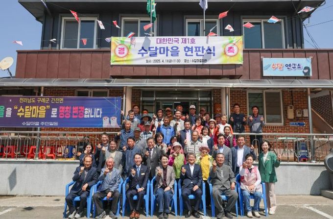 구례군은 4월 11일, 간전면 수달마을에서 김순호 군수를 비롯한 지역 주요 인사들과 마을 주민 등 100여 명이 참석한 가운데 마을 명칭 변경 현판식 행사를 개최했다고 밝혔다.