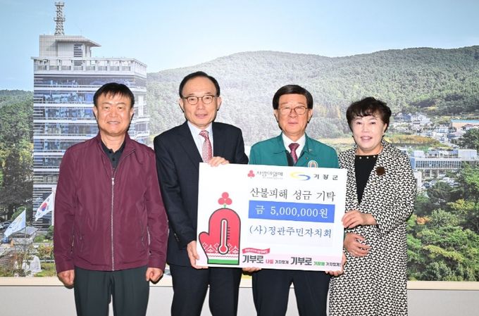 이번 성금은 (사)정관주민자치회 이사장 및 임직원들이 뜻을 모아 마련됐으며, 기탁된 성금은 부산사회복지공동모금회를 통해 영남지역에서 발생한 산불 피해 지원을 위한 재원으로 사용된다.
