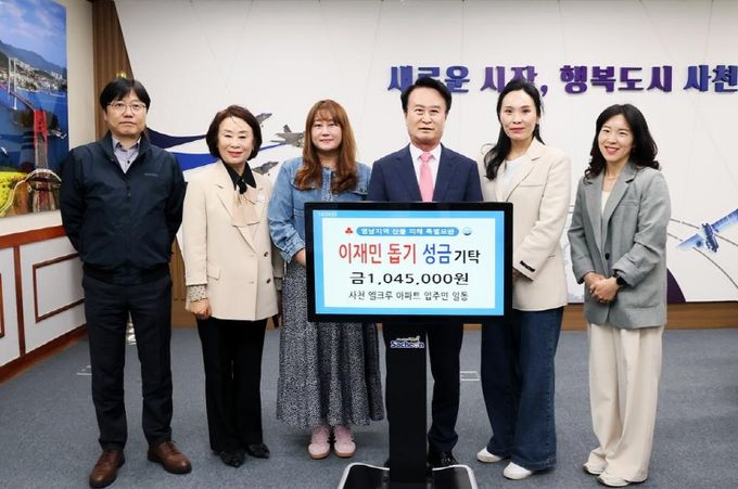 박동식 시장은 “이웃의 아픔에 함께해 주신 사천 엘크루 아파트 입주민 여러분께 깊은 감사를 드린다”며 “소중한 성금은 신속하고 투명하게 피해 복구를 위해 사용하겠다”고 밝혔다.