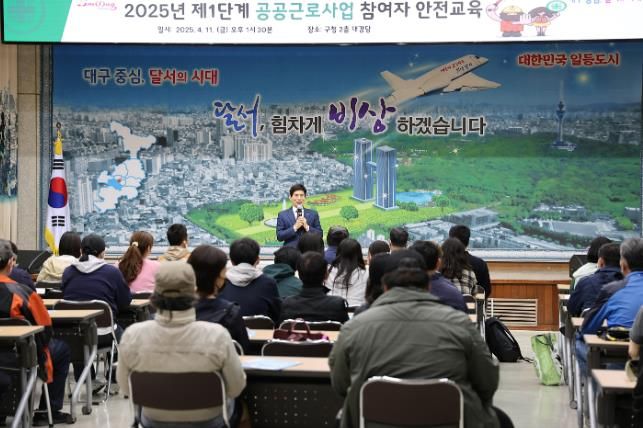 (아름다운교육신문) 대구 달서구가 지난 11일 구청 2층 대강당에서 2025년 제1단계 공공근로사업 참여자 66명을 대상으로 안전교육을 실시했다.