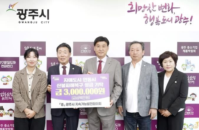 (아름다운교육신문) 광주시지속가능발전협의회는 최근 발생한 경상북도 안동시 산불 피해 복구를 위해 성금 300만 원을 지난 4일 사회복지공동모금회에 전달했다.