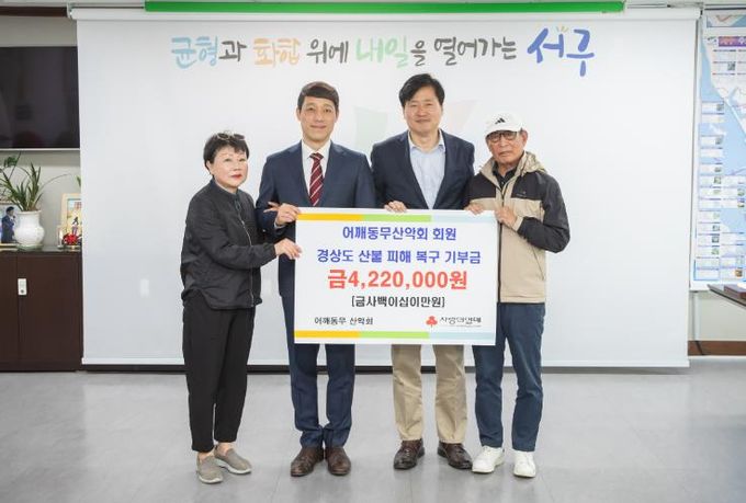 (아름다운교육신문) 인천광역시 서구는 어깨동무산악회가 경상도 산불 피해 복구를 위한 성금 422만원을 기부했다고 14일 밝혔다.