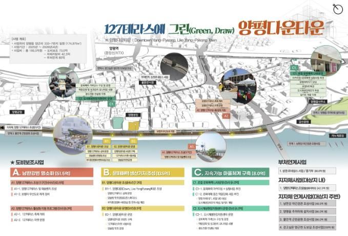 해당 사업은 양평읍 양근 1리, 2리, 7리 일원(174,879㎡)을 정비해 정주여건을 개선하고 명소화하는 것으로 4년간 총 73억원(도비 36.5억원, 군비 36.5억원)의 예산이 투입되며 마을 일대에 양근강변길 보행 데크, 커뮤니티형 광장, 로컬 문화매력 LAB 등이 조성될 예정이다.