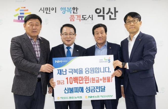 이날 기탁된 성금은 산불 피해로 힘든 시간을 보내고 있는 이들에게 조금이나마 위로를 전하기 위해 농협 익산시지부 직원들의 자발적인 모금 활동을 통해 마련됐다.
