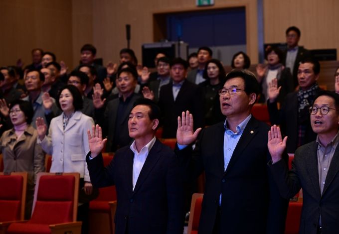 백성현 시장은 ‘스스로를 되돌아 보는 도덕적 리더십’을 강조하며, “도덕적으로, 윤리적으로 시민 앞에 설 수 있는 자격이 있는지 끊임없이 스스로 담금질하고 채찍질하는 노력이 필요하다”며 “조직을 넘어 사회를 평등하고 밝게 만들어 나갈 수 있도록 부서장으로서 역할과 책임을 다해줄 것”을 당부했다.