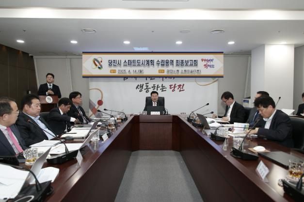 15일 시에 따르면, 지난 14일 당진시청 소회의실에서 오성환 당진시장을 비롯한 관계 공무원 50여 명이 참석한 가운데‘스마트 도시계획 수립 용역 최종보고회를’ 개최하고, 향후 5년간 추진할 스마트도시 건설사업의 종합 전략을 공유했다.