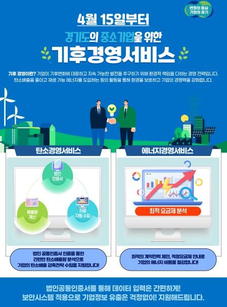 (아름다운교육신문) 경기도가 중소기업의 탄소중립 실천과 에너지 비용 절감을 돕기 위해 ‘중소기업 기후경영서비스’를 15일 시작했다.