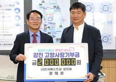2024년 강진군민 장학금 3백만 원을 기탁한 LG전자베스트샵 강진점 정종훈 대표는 이번 기탁식에서 아들 정태준씨의 이름으로 대리 기탁해 “우리 강진이 더 살기 좋은 지역이 되길 희망한다”며 “어려운 시기에 주민 모두가 힘내시길 바란다”고 말했다.