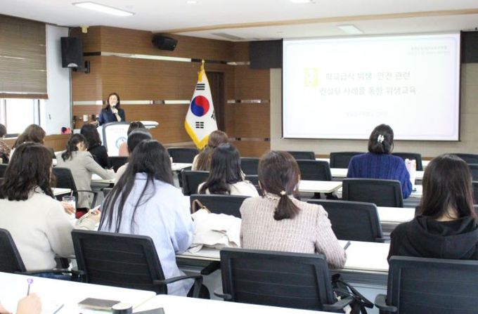이번 교육은 학교급식의 위생 및 안전 강화를 목표로 마련됐으며, 공주대학교 김미영 교수를 강사로 초빙해 식중독 예방을 위한 체계적인 관리 방안을 중심으로, 학교급식 위생·안전 관련 컨설팅 사례를 통한 실질적인 위생관리 방안 등을 강의했다.