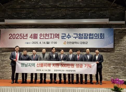 (아름다운교육신문) 인천지역 군수·구청장협의회는 지난 14일 강화군에서 주최한 4월 군수·구청장협의회에 참석해, 영남(울산·경북·경남)지역의 산불 피해 복구 및 이재민 지원을 위한 성금 500만 원을 사회복지공동모금회를 통해 전달했다.