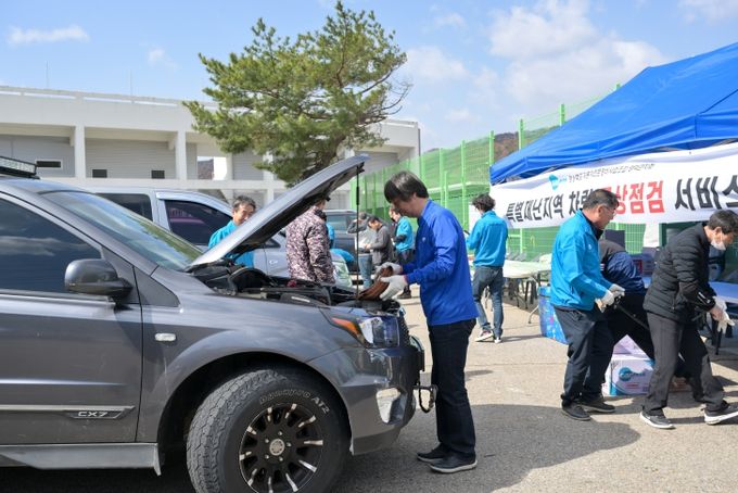 (아름다운교육신문) 경상북도 자동차전문정비조합(카포스) 영덕군지회는 지난 13일 영덕군민운동장에서 산불 피해 차량을 포함한 주민들의 차량을 무상으로 점검해 주는 봉사활동을 펼쳤다.