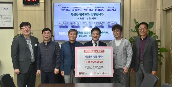 15일 김제시에 따르면 지역 랜더링 업체 5개소가 이웃돕기 성금 2,500만원을 기탁했다.