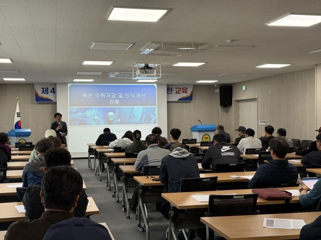 교육은 전북녹색환경지원센터 박비오 박사를 초청해 실시했으며, ▶악취 발생 원인 분석, ▶현장 적용 가능한 저감 기술, ▶퇴·액비 관리법▶악취관련 법령과 정책 방향 등을 다뤘다.
