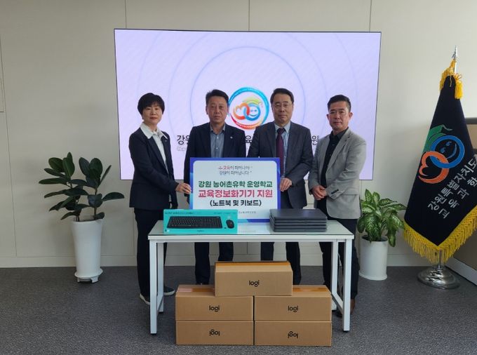 (아름다운교육신문) 강원특별자치도교육청교육과학정보원은 15일 11시 교육과학정보원에서 영월 무릉초등학교의 농어촌유학 지원을 위해 노트북 10대 등을 지원하는 ‘농어촌유학 노트북 나눔식’을 개최했다.