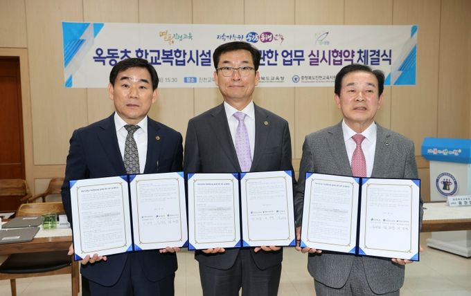 (아름다운교육신문) 진천교육지원청은 지난 15일 충청북도교육청, 진천군과‘옥동초 학교복합시설 설치에 관한 업무 실시협약’을 체결했다.