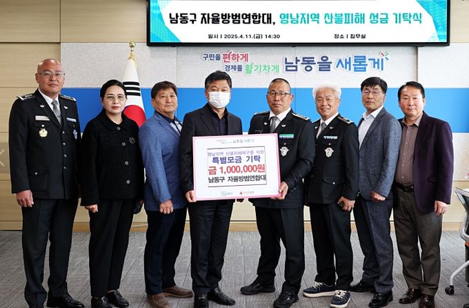 (아름다운교육신문) 인천시 남동구 자율방범연합대는 영남 지역에서 발생한 대규모 산불피해 복구를 위해 성금 100만 원을 기탁했다고 16일 밝혔다.