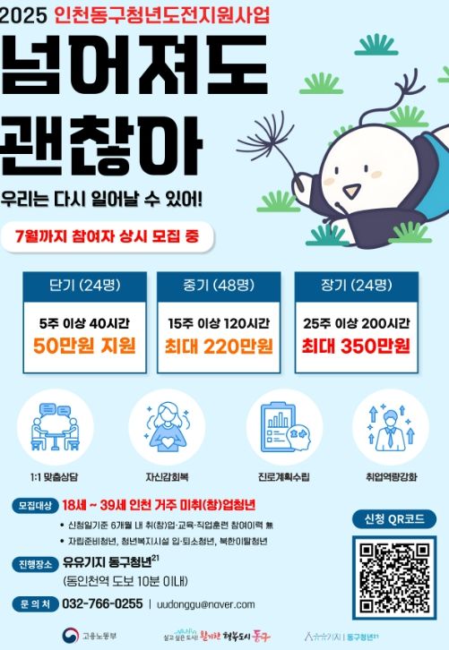 (아름다운교육신문) 인천 동구는 청년도전지원사업 참여자를 오는 7월23일까지 모집한다고 밝혔다.