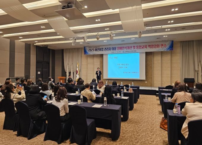 (아름다운교육신문) 화성오산교육지원청은 지난 4월 16일, 화성 푸르미르호텔 사파이어홀에서 화성오산 관내 장애전담 및 장애통합 어린이집 원장을 대상으로 '유보통합을 위한 2025 어린이집 관리자 장애인식개선 및 통합교육 연수'를 실시했다.