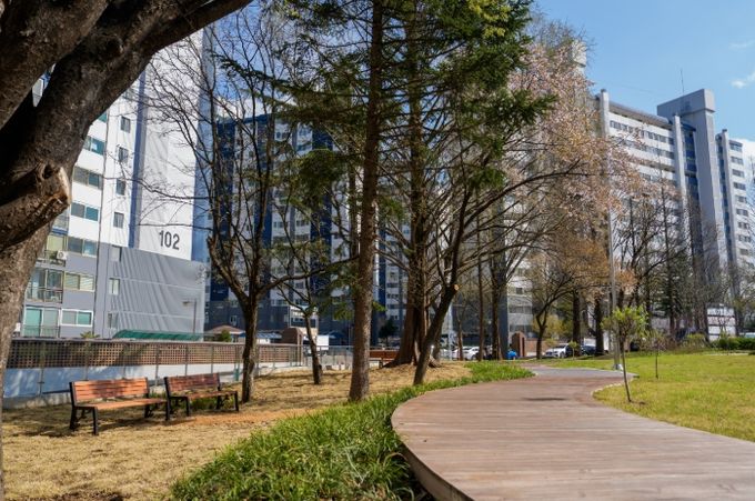주민들은 커다란 나무 그늘 아래서 잠시 숨을 고르고, 아늑하게 꾸며진 산책로를 따라 걸으며 도심 속에서도 자연의 여유를 만끽할 수 있다.