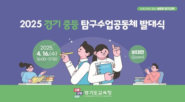 (아름다운교육신문) 경기도교육청이 16일 ‘2025 경기 중등 탐구수업공동체 발대식’을 개최한다. 깊이있는 수업 비전 공유로 질문과 탐구, 토론 중심의 교실수업 혁신 분위기 확산에 적극 앞장설 계획이다.