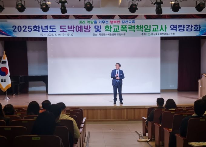 경상북도김천교육지원청은 지난 4월 16일 오후 1시 30분, 김천학생문화예술센터 드림마루에서 초·중·고·각종학교 학교폭력 책임교사 55명을 대상으로 ‘2025학년도 학교폭력 책임교사 역량 강화 연수’를 실시했다.