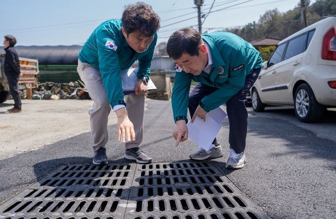 이날 이 군수는 해당 도로의 지반 상태, 도로 포장면 균열 여부, 배수시설 기능 상태 등을 중점적으로 확인했다.