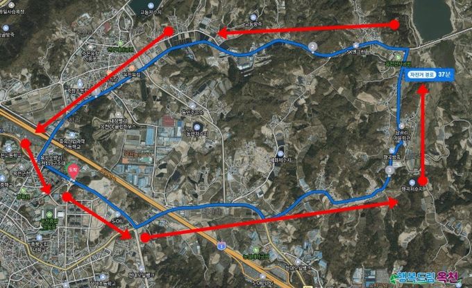 라이딩의 코스는 청소년수련관 앞 광장에서 출발해 향수공원오거리 ~ 문정삼거리 ~ 하계리회전교차로 ~ 옥천선사공원 ~ 옥천동이로삼거리(매화리) ~ 옥천동이로 사거리 ~ 청소년수련관으로 돌아오는 코스이다.