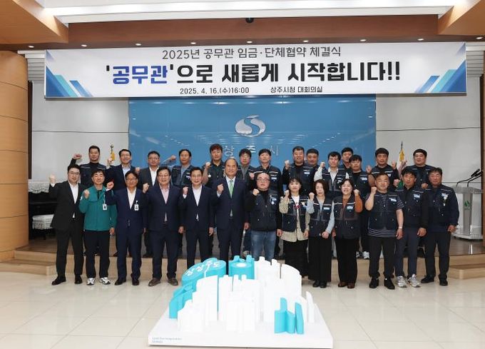 (아름다운교육신문) 상주시와 전국자치단체공무직본부 상주시지부는 4월 16일 시청 대회의실에서 2025년도 임금 및 단체협약을 체결했으며, 공무직 명칭 변경 합의에 따른 제1호, 제2호‘공무관’증 수여식도 함께 개최했다.