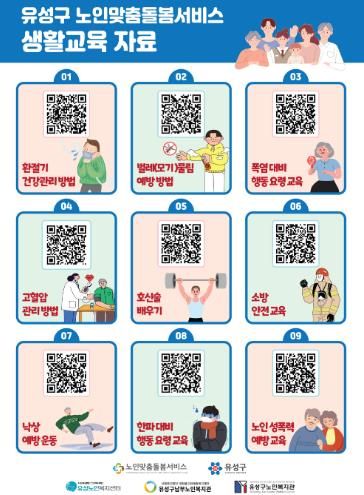 이번 교육 자료는 유성구 노인맞춤돌봄서비스 이용자 1,200여 명에게 제공될 예정이며, 스마트 기기 사용이 익숙하지 않은 어르신들에게는 생활지원사가 직접 가정에 방문해 QR코드 활용과 영상 시청 방법을 안내할 계획이다.