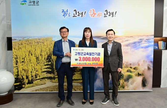 (아름다운교육신문) ㈜하나산림에서 4월 15일 고령군청을 방문하여 지역의 교육 발전과 인재 양성을 위해 사용해 달라며 교육발전기금 300만원을 기탁했다.