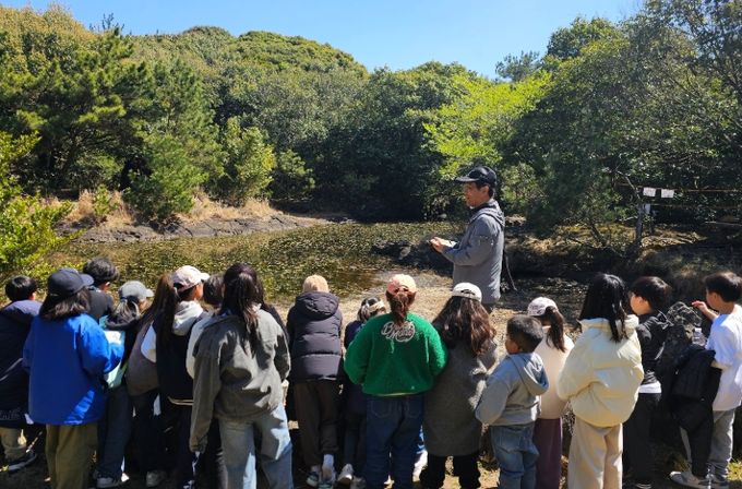 (아름다운교육신문) 제주도교육청 수산초등학교와 평대초등학교 15일 3~4학년 학생 21명(수산초 16명, 평대초 5명)을 대상으로 동백동산 람사르 습지 ‘먼물깍’을 탐방하는 공동교육과정을 운영했다.