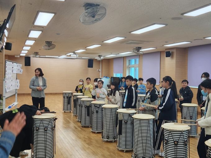 이날 홍콩 학생 32명과 교사·학부모 6명은 인천현송초를 방문해 교내 시설을 둘러보고, 난타, 민화 그리기 등 체험 수업에 참여했다.