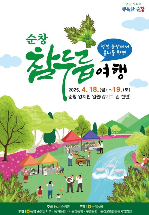꽃잔디가 만개한 생태하천 양지천을 배경으로 열리는 이번 행사는 순창을 대표하는 봄나물인‘참두릅’을 중심으로 한 먹거리, 체험, 문화가 어우러진 축제로, 순창의 자연과 지역 농산물의 매력을 한껏 느낄 수 있는 기회가 될 전망이다.