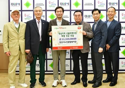 조현일 경산시장은“어려운 시기에도 불구하고 산불피해 지원 성금을 기탁해 주시어 감사드린다”며“성금은 경북사회복지공동모금회를 통하여 피해 주민들의 일상 회복에 쓰일 수 있도록 신속하게 전달하겠다”고 답했다.