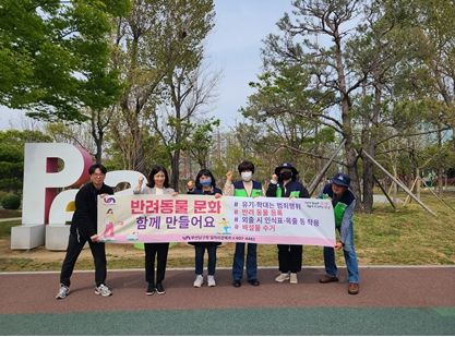 부산 남구는 반려견 산책지역 안전관리자, 명예동물보호관 등과 함께 주요 반려견 산책지역인 평화공원, 동명대 동숲 일대을 순찰하며 동물보호법 준수사항을 안내하고 성숙한 반려동물 문화 정착을 위해 계도를 실시했다.