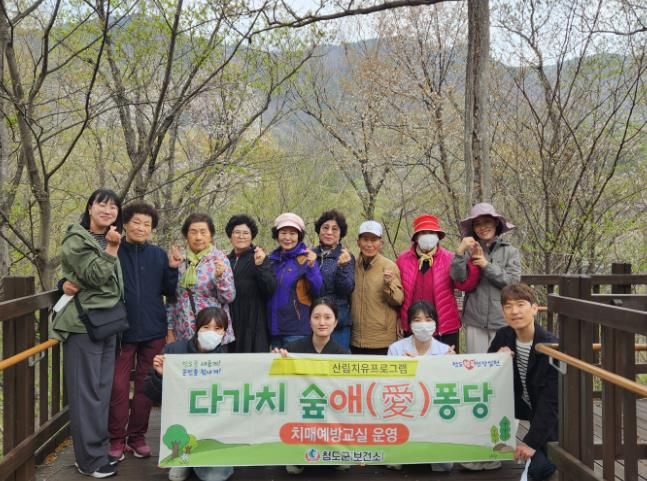 김하수 청도군수는 “산림자원을 활용한 치매예방 프로그램은 치매환자와 가족 모두에게 힐링과 회복의 시간”이라며, “앞으로도 지역사회 관련 기관과의 발 빠른 협업을 통해 치매가 있어도 행복을 누릴수 있는 치매친화적 환경조성을 위해 다양한 지원을 아끼지 않겠다”고 밝혔다.